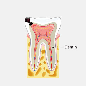 C2:虫歯が歯の内部まで進行 う蝕がエナメル質の奥の象牙室に達した状態で、飲食時にしみて痛みを感じます。詰め物の型を取る必要があります。